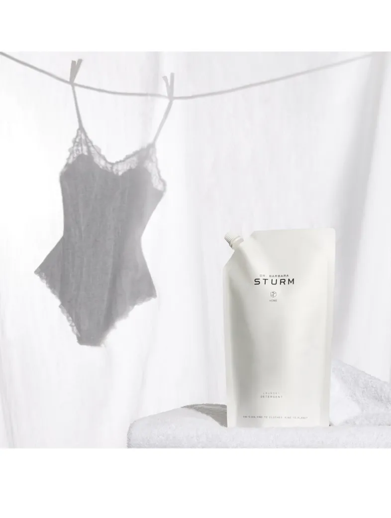 Dr. Sturm’s LAUNDRY DETERGENT was formulated specifically to address inflammation from the first source of contact, our clothing: the skin-friendly formulation contains skin-soothing, plant-based actives such as Panthenol, Aloe Vera and Purslane Extract, as well as bio ingredients which gently and effectively clean all laundry, including sportswear and silk. The formula is free from preservatives and other chemicals which can typically trigger skin irritation, and is scented with a natural, plant-based Sandalwood and Amyris fragrance that is safe for use on all skin types.