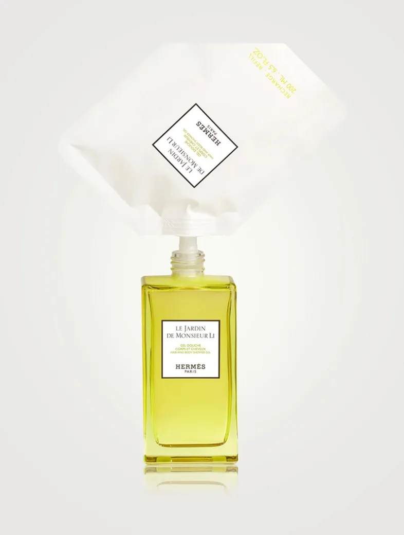 Le Jardin de Monsieur Li expresses the gentle escapism of the Parfums-Jardins in the form of a shower gel. Another way to wear fragrance. An environmentally friendly formula that forms a pleasant, easy-rinse lather. The fully recyclable refill can be used to replenish the glass Le Jardin de Monsieur Li shower gel bottle of the same size. A responsible gesture, integral to an object created to last.