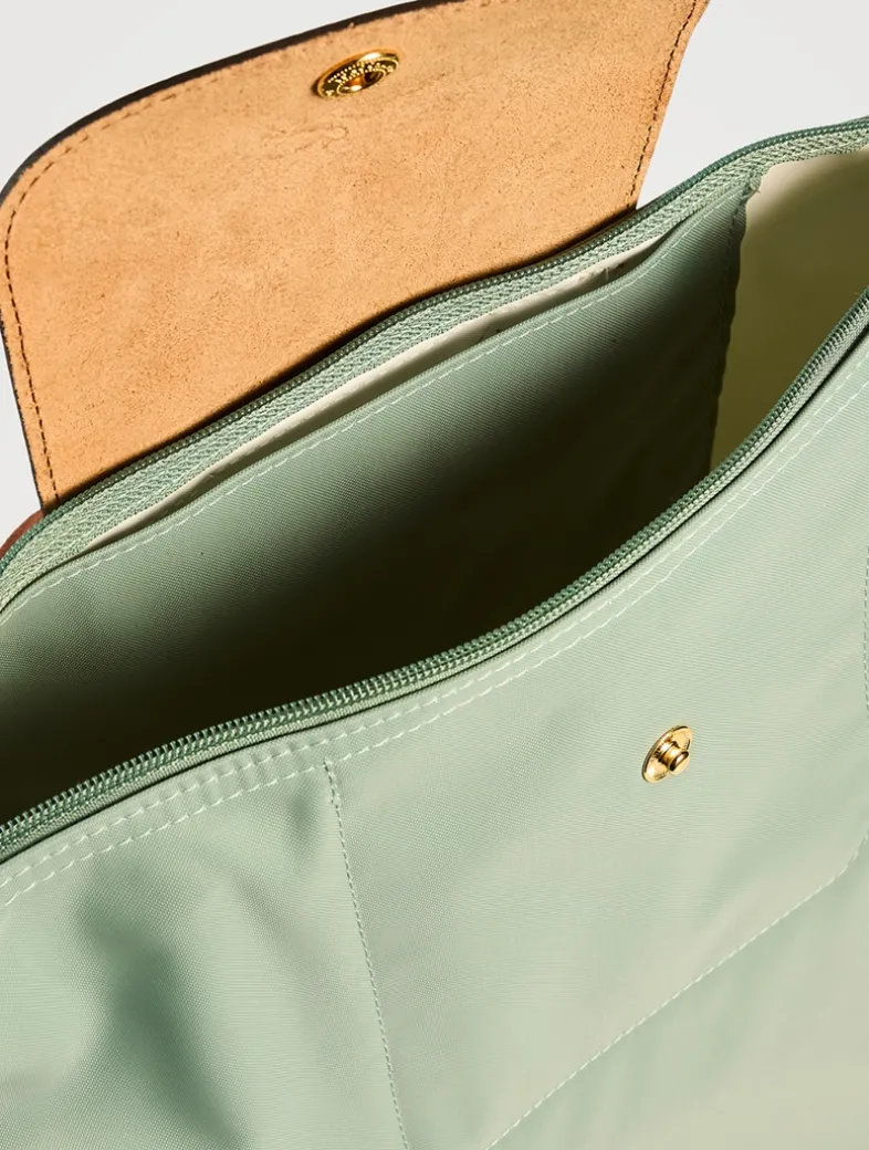 This ultra-lightweight backpack, crafted from durable, foldable recycled nylon canvas, is perfect for any occasion. Its versatile design features a spacious interior that comfortably fits a 14