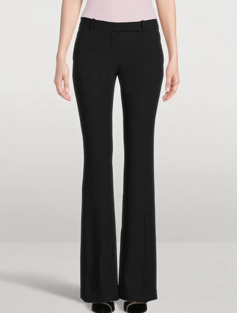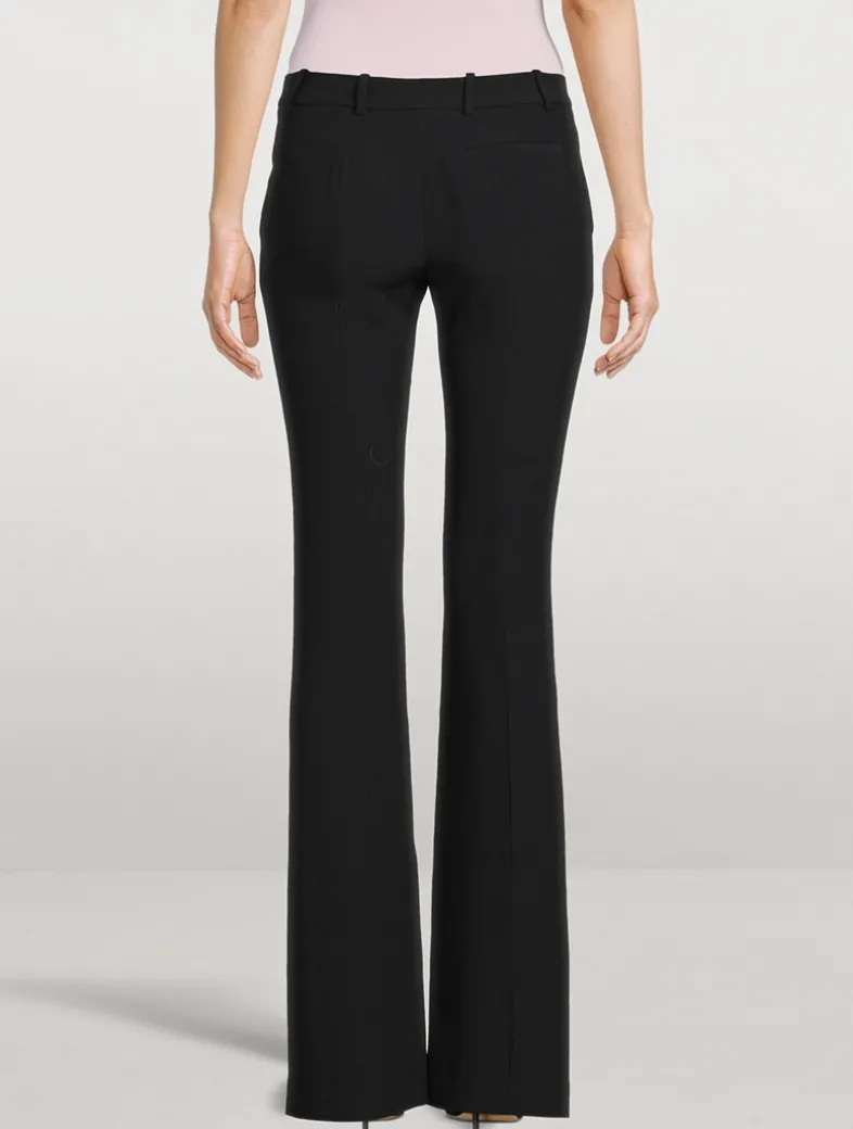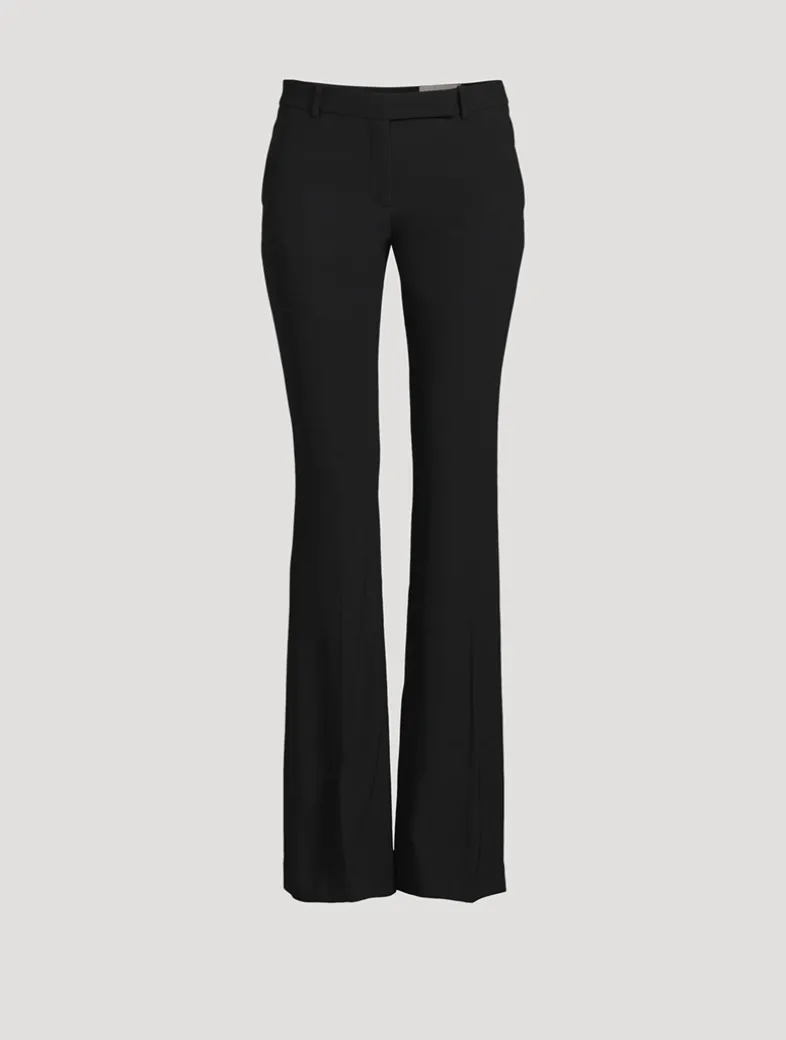 Crafted of a leaf crepe, these pants are tailored in a refined bootcut silhouette with a mid-rise waist. They feature side pockets and a back jet pocket. Finished with a concealed front fastening.
