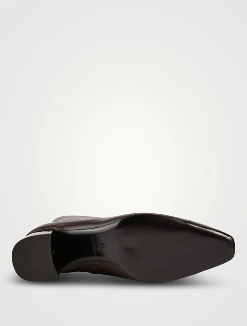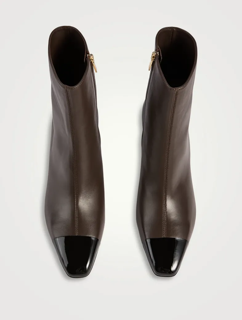 Made in Italy, these supple leather ankle boots feature a square toe with a patent cap detail.