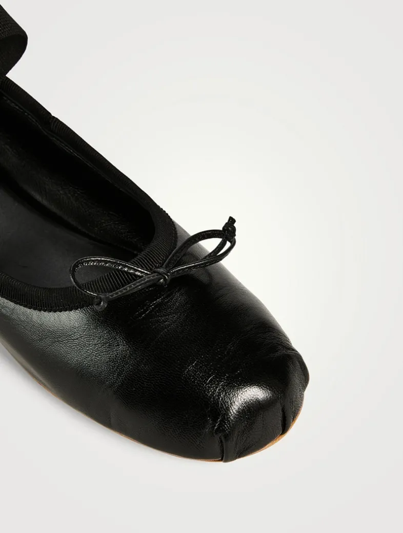 Iconic, romantic and versatile. These leather ballerinas combine an original design with cosmopolitan style. The bow and elastic band with logo add feminine details that are both classic and modern.