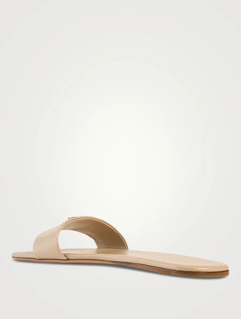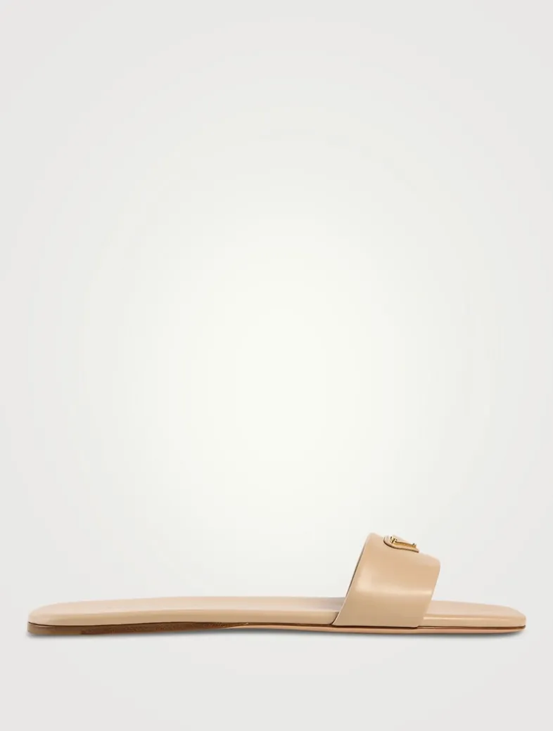Crafted from a buttery-soft leather, these slides merge a contemporary design with classic styling. The sophisticated and versatile pair, defined by clean, sleek lines, is enriched with the iconic enamelled metal triangle logo.