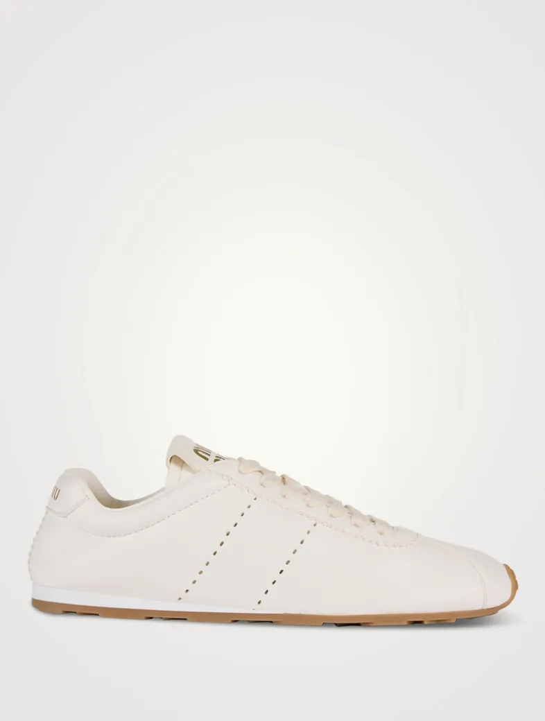 Set on a rubber gum sole, these low-top sneakers are crafted from buttery-soft leather embellished with metallic logo details.