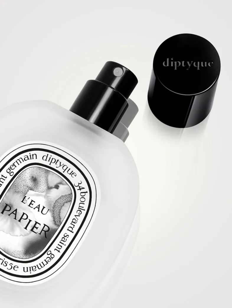 In a single, invisible gesture, the mist enriches the hair while intensively perfuming it with notes of L’Eau Papier. Signed by Diptyque, an olfactory interpretation of the absorption of ink into a sheet of paper.