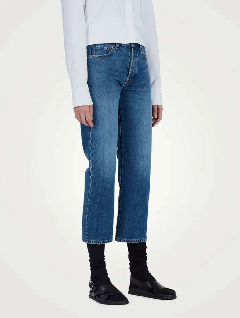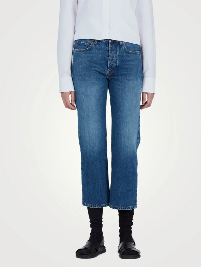 Featuring a five-pocket construction, these mid-rise jeans are cut with an ankle-length and straight-leg silhouette. Crafted in classic washed denim, these cropped jeans are finished with a subtly flared hem.