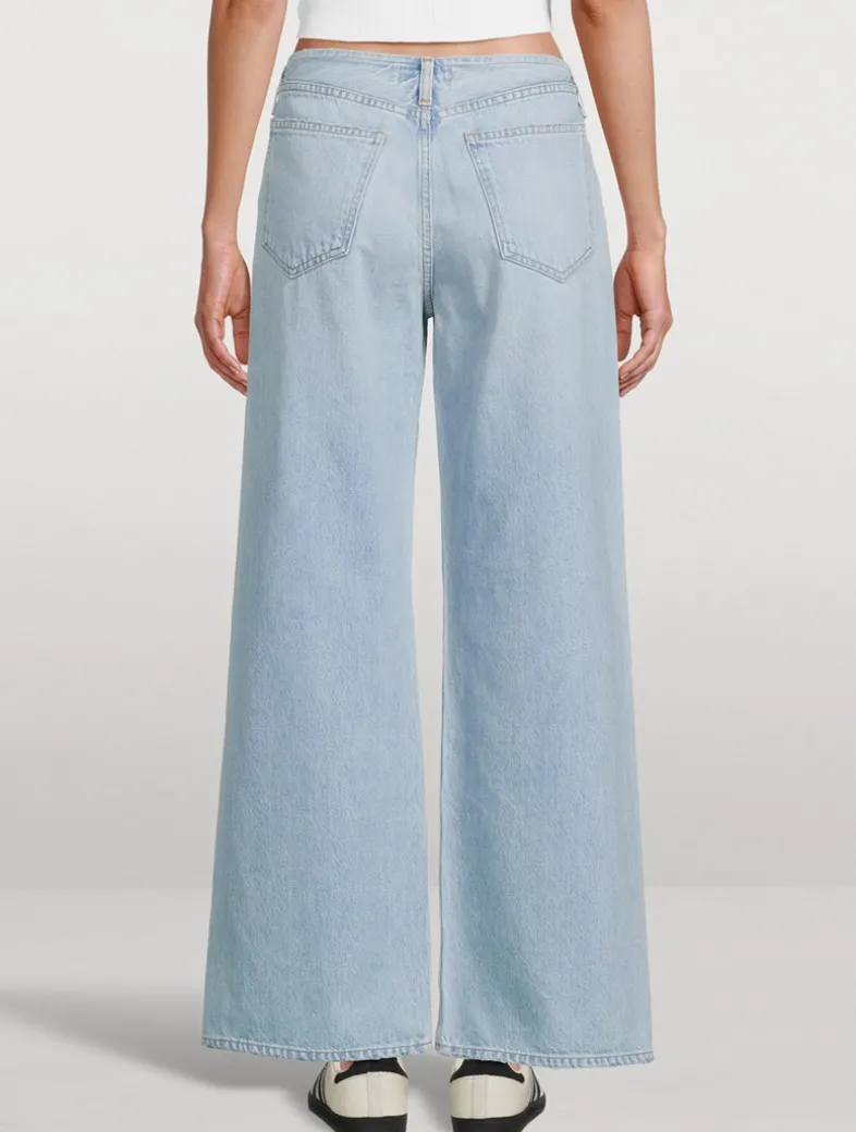 These wide-leg jeans have a unique waistband design. Crafted from regenerative cotton, they feature belt loops and a classic five-pocket style.