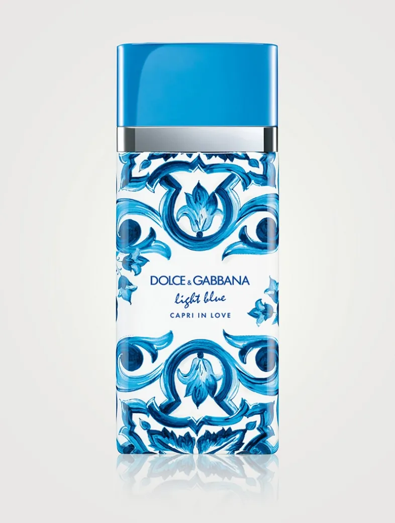 Capri, an island that enchants with its breathtaking landscapes, inspires the captivating bouquet of Light Blue Capri In Love Eau de Parfum. An ode to its natural elegance, where delicate Jasmine Tea notes rest upon the crispy embrace of Green Apple, intertwined with the sensual depth of Longoza. The island’s serenity and refinement are captured in every nuance of this composition, crafting a unique and enveloping olfactory journey. The bottle with its sinuous lines and enameled cap is embellished with decorative motifs of Caprese blue majolica.