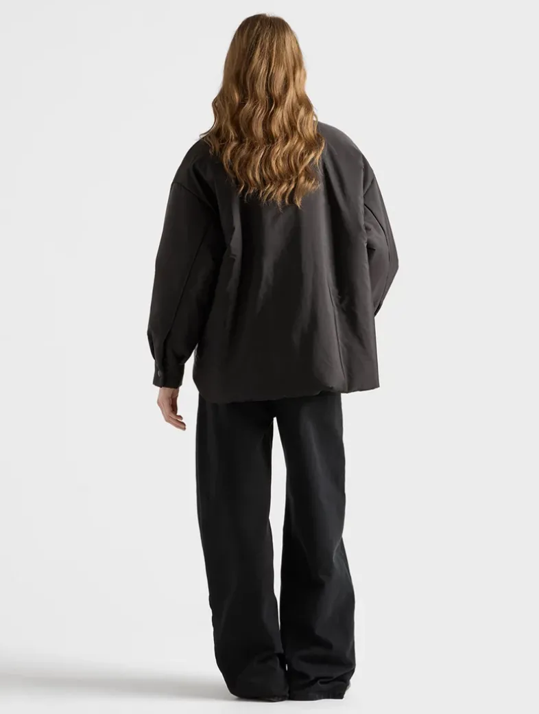 Lined Shirt collar Long sleeves Cuff with buttons Button closure Welt pockets Enameled metal triangle logo Padded garment Comfortable regular fit, the garment fits up to one size larger
