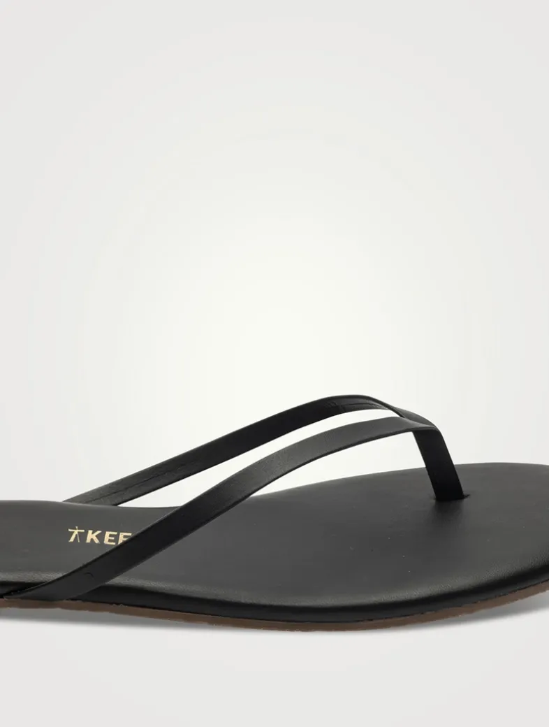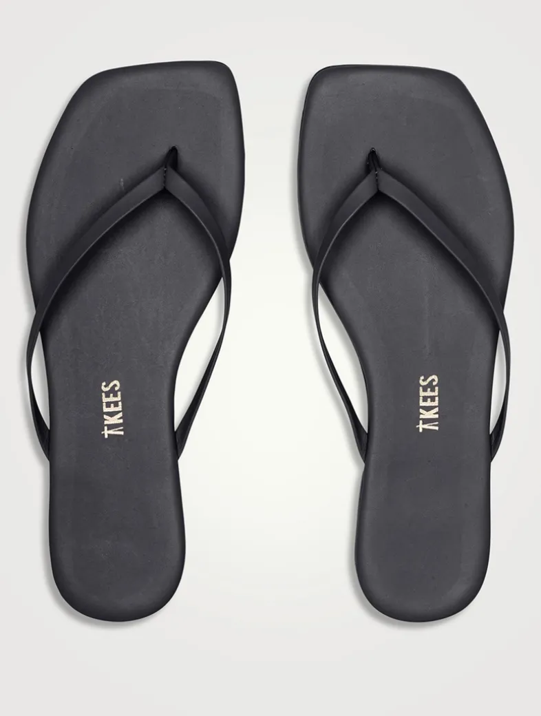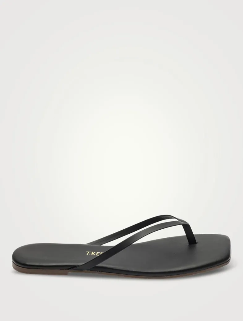 A squared-off toe defines these thong sandals, which are crafted from leather with a rubber sole.