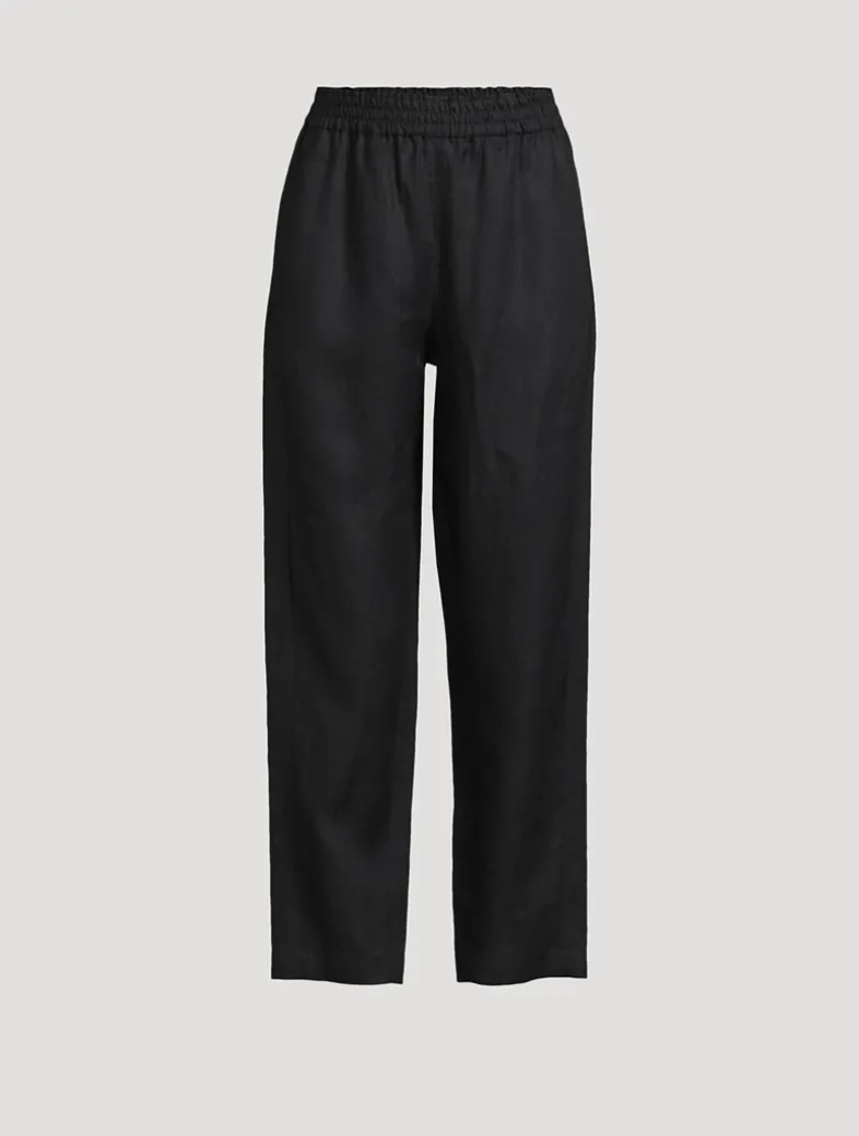 These elastic-waist trousers are made in smooth, crisp pure linen. A clean, modern style with practical side pockets and a back patch pocket.
