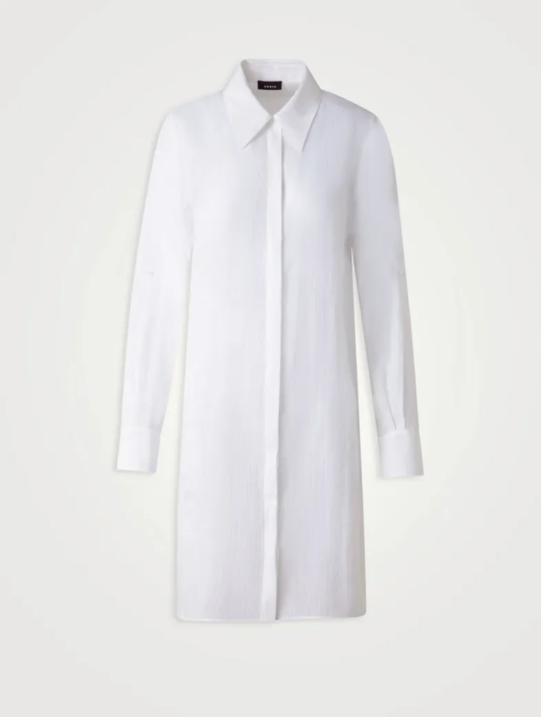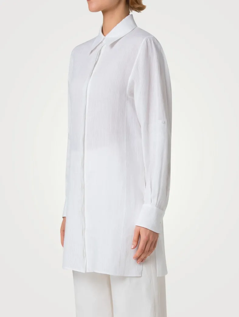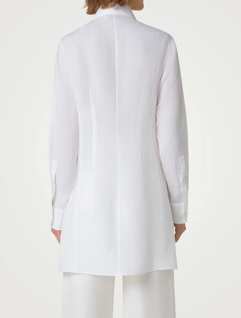 Crafted from striped linen canvas, this shirt blends the classic menswear cut with a tunic length. The design is given a feminine shape with shaping darts at the back.