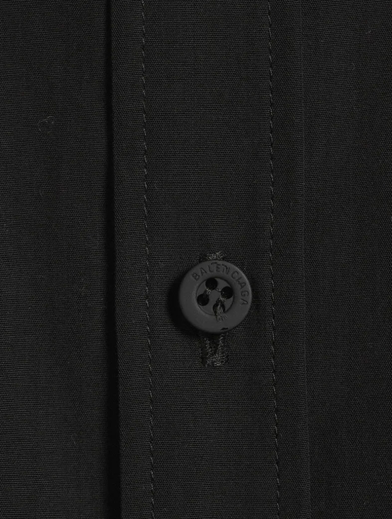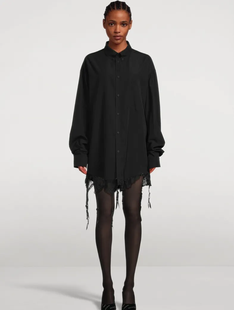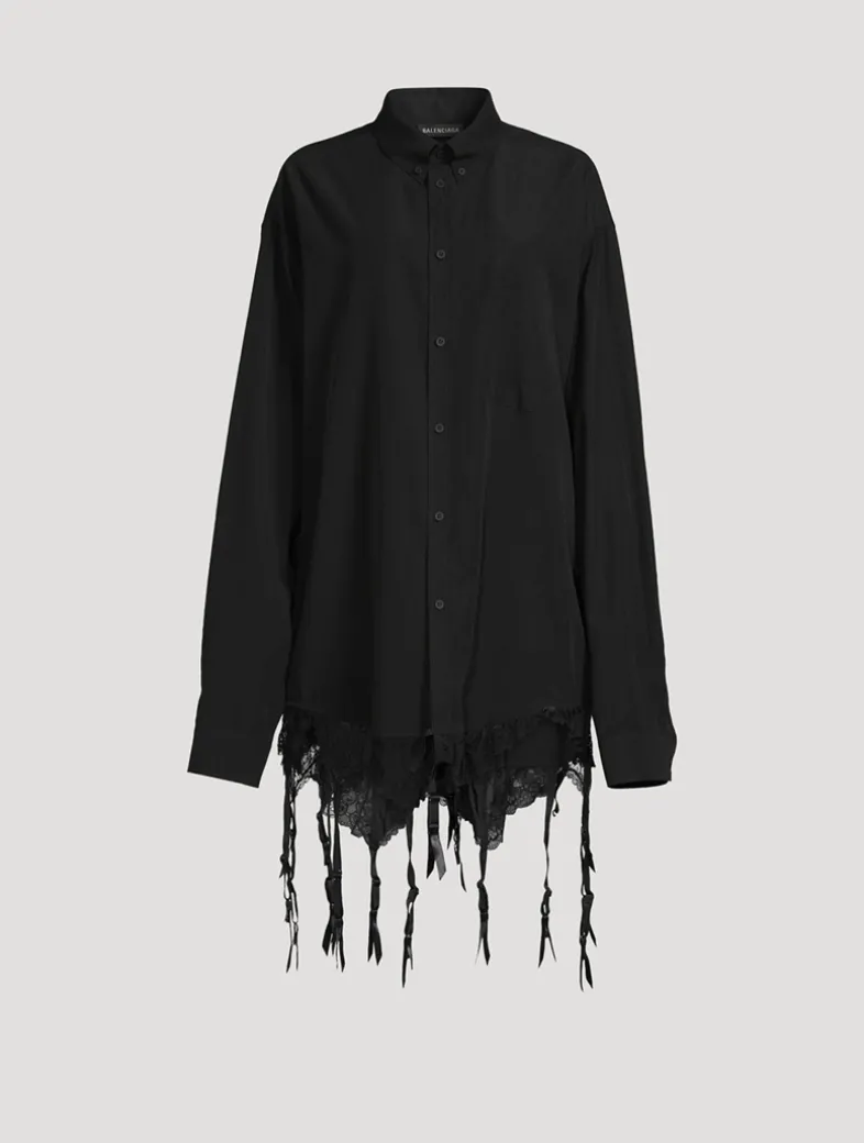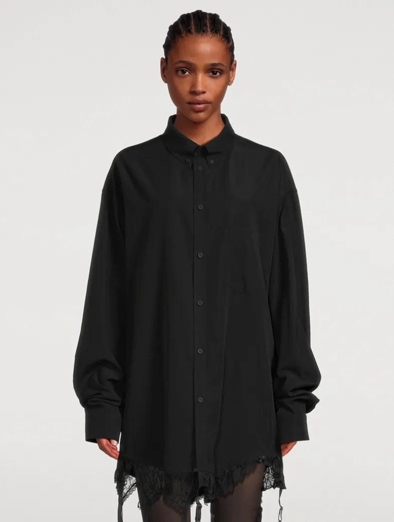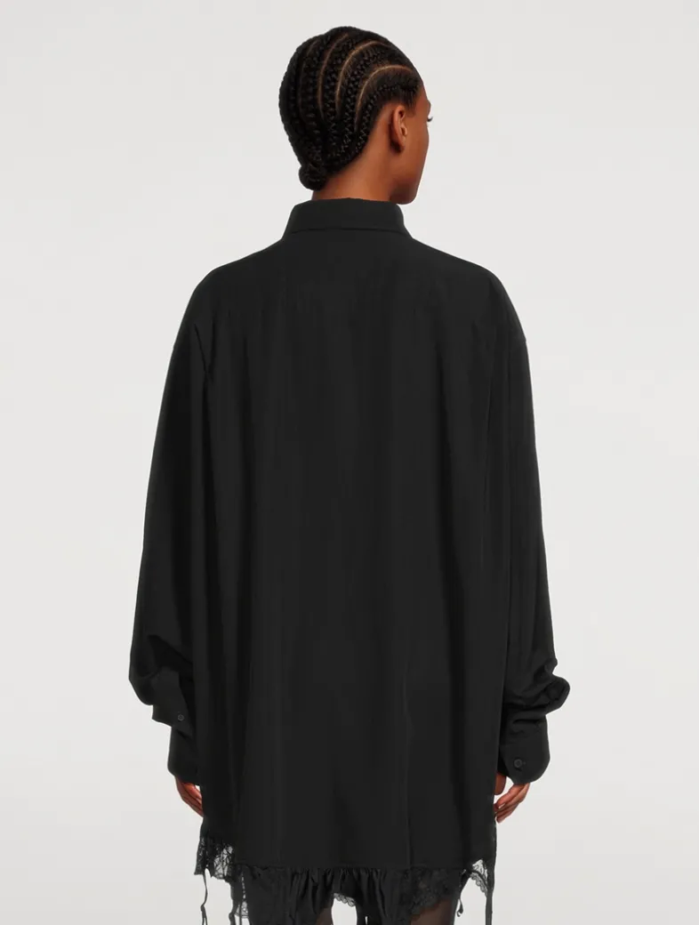 Lingerie-inspired detailing at the hem lends a seductive touch to this long-sleeve shirt. Crafted from a fluid poplin, it is cut to an oversized silhouette with a buttoned closure and a patch pocket at the chest.