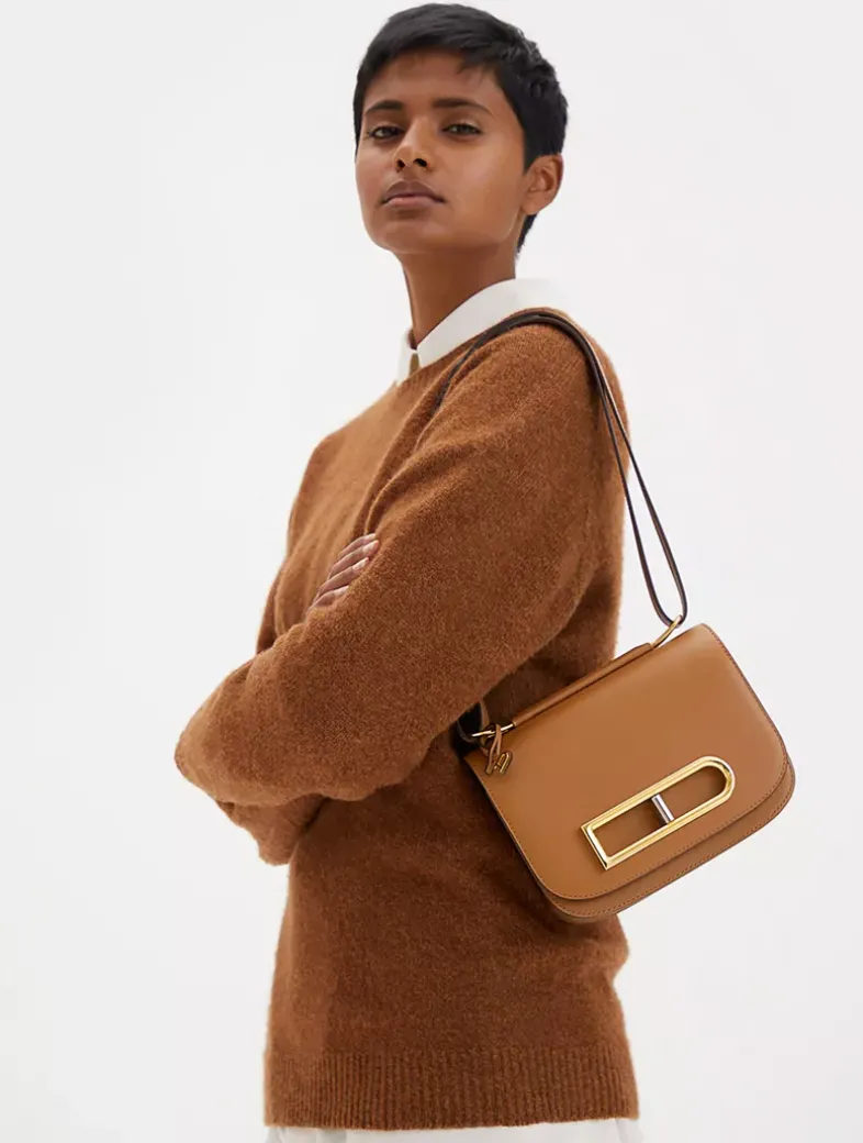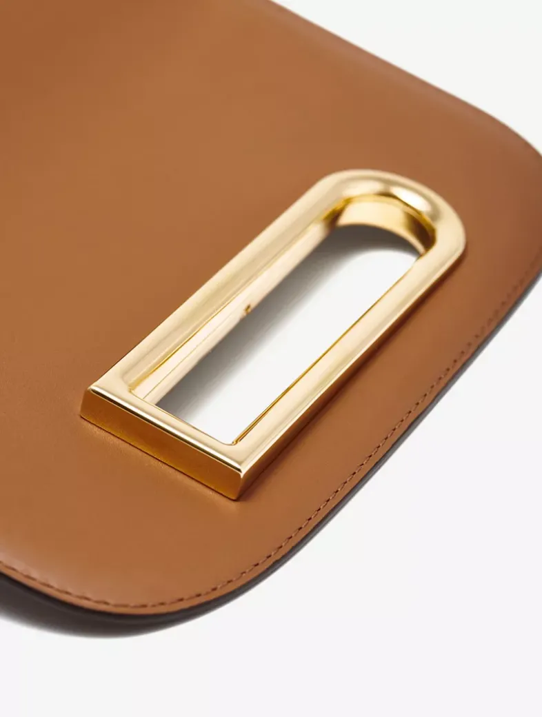 Modern and in the spirit of the times, the new Lingot handbag was created with a contemporary yet timeless aesthetic. The name comes from the bag’s signature oversized D-shaped buckle crafted in deep gold and silver colours, and features unique bevelled details. With its graphic lines trademark of La Maison, the Lingot is crafted in fine Olen Calf leather, showcasing the leather expertise of Delvaux’s artisans. The bag’s earthy Tan colourway offers timeless elegance, and is ideal for day-to-night use.