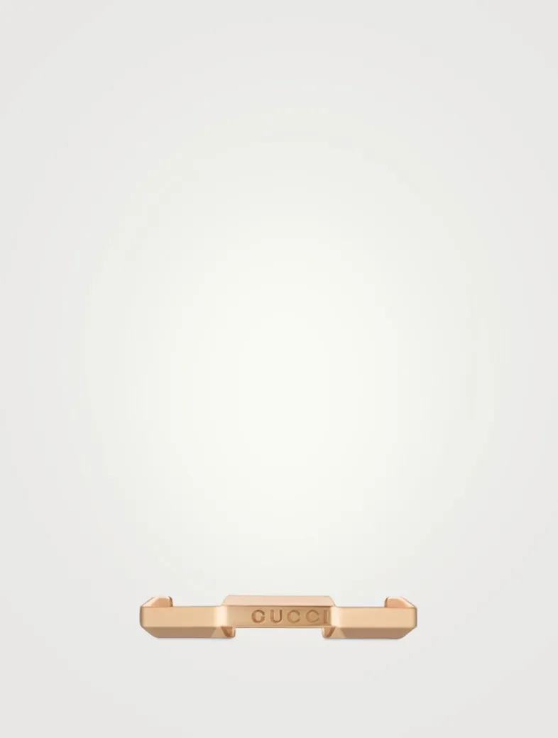 A modern and individual interpretation of romance, pieces From the Link to Love collection feature unisex styles in a mix of tones and finishes. Finished with GUCCI engraving, this 18k gold mirrored ring is designed with a stackable mechanism. In line with the brand’s sustainability strategy, GUCCI guarantees, internally and within its supply chain, respect for standards of Social & Environmental Responsibility.