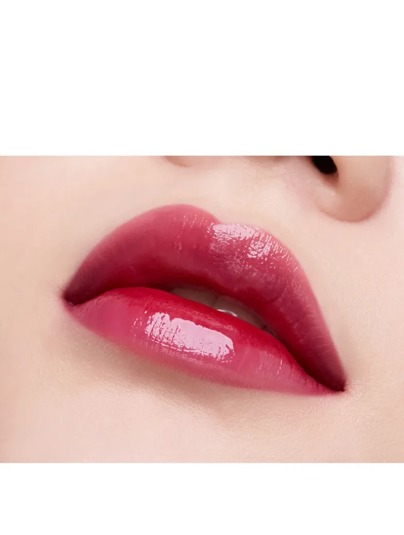 Glass Coating Effect with a vibrant colour and radiant glow that intensifies with each application. The Triple Layer Coating forms a dense, glass-like finish that locks in colour and glow for long-lasting wear without smudging. The Oil-in-Water formula ensures a smooth, non-sticky application, allowing the oil particles to burst onto the skin, delivering a bright, luminous finish that builds with every layer.