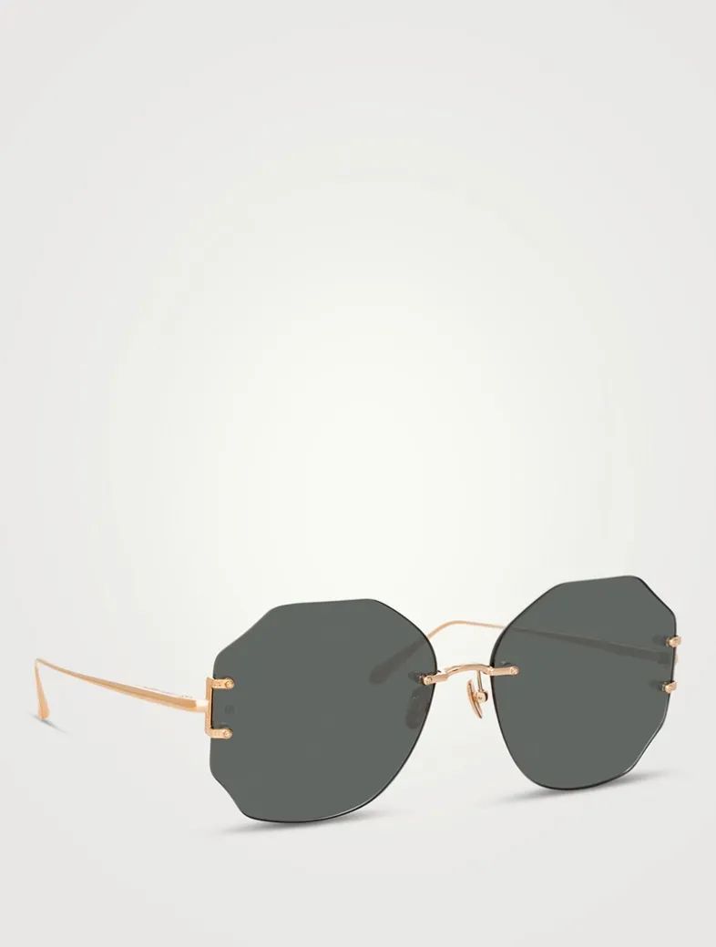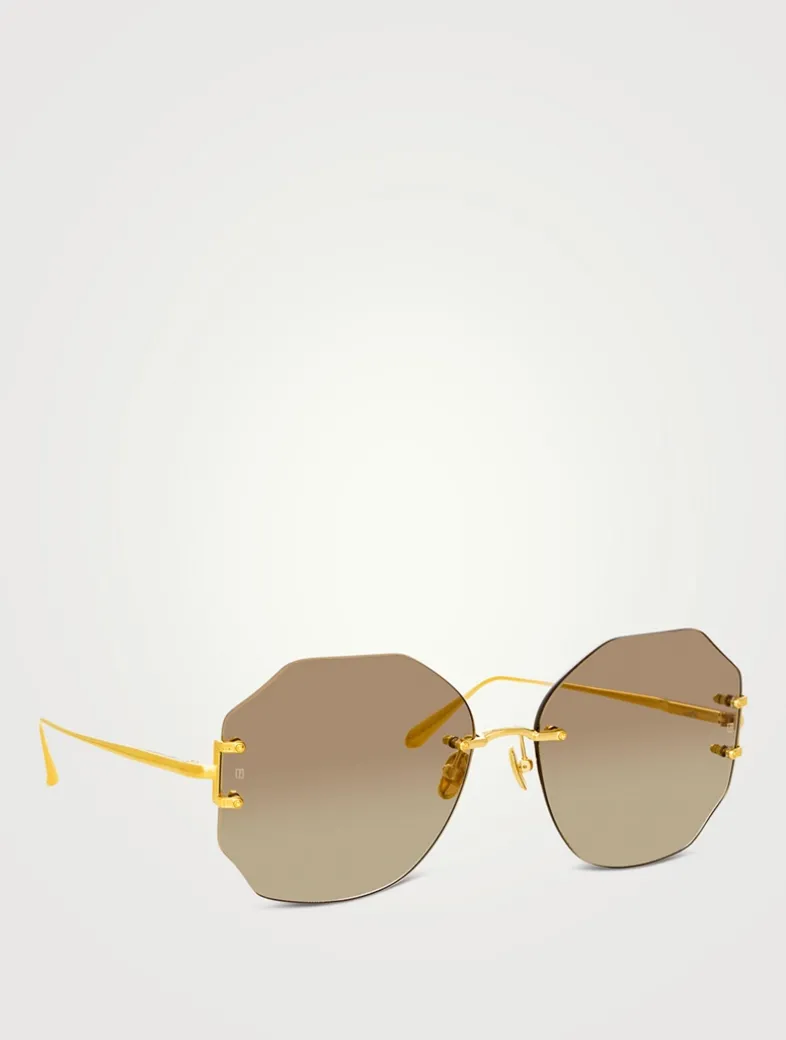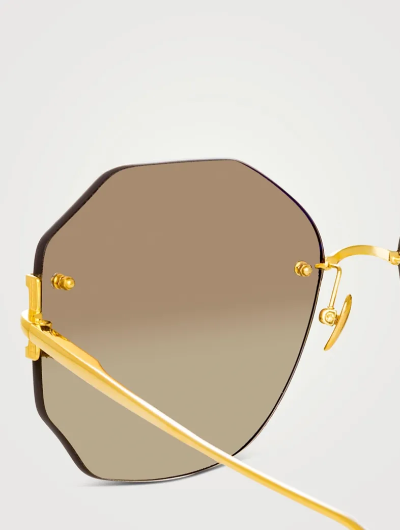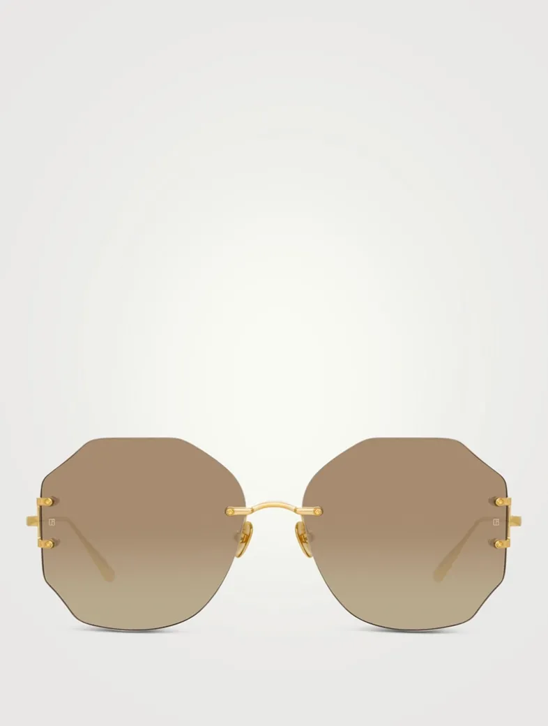 Defined by their rimless geometric lenses, these oversized sunglasses are constructed with a lightweight metal bridge and arms.