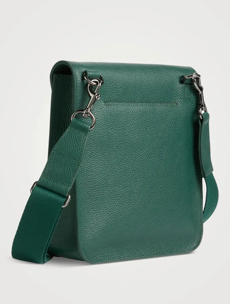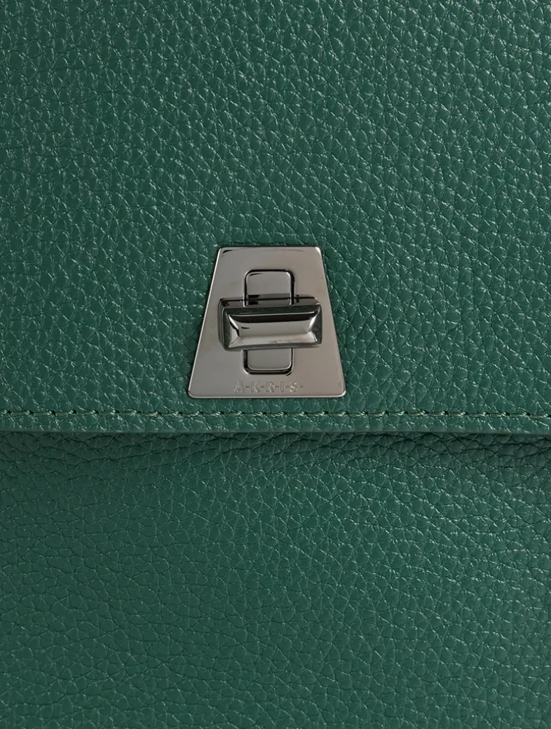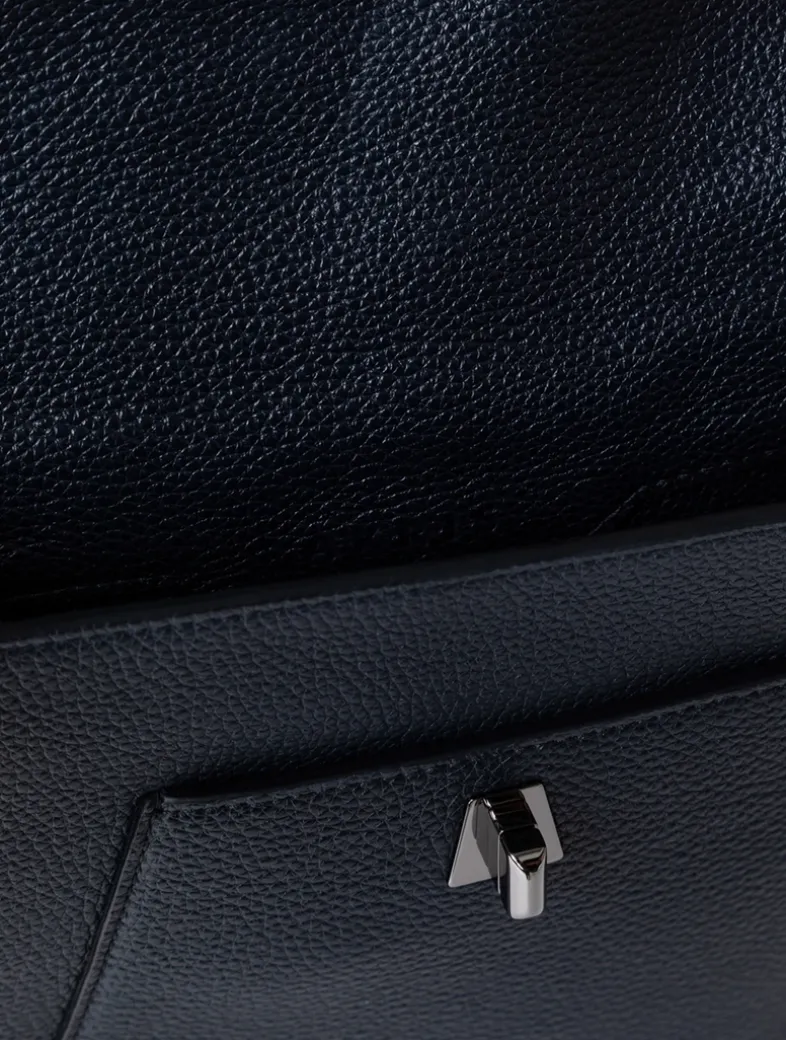 The Anouk Messenger is a practical crossbody bag with a slightly vertical rectangular design. The trapezoidal front flap with custom turn-lock connects it to the other Akris handbag families. It features a spacious main compartment with one clamp pocket and a front and back pocket on the outside. The adjustable strap is created from a wide webbing for stability and comfort while on the go.