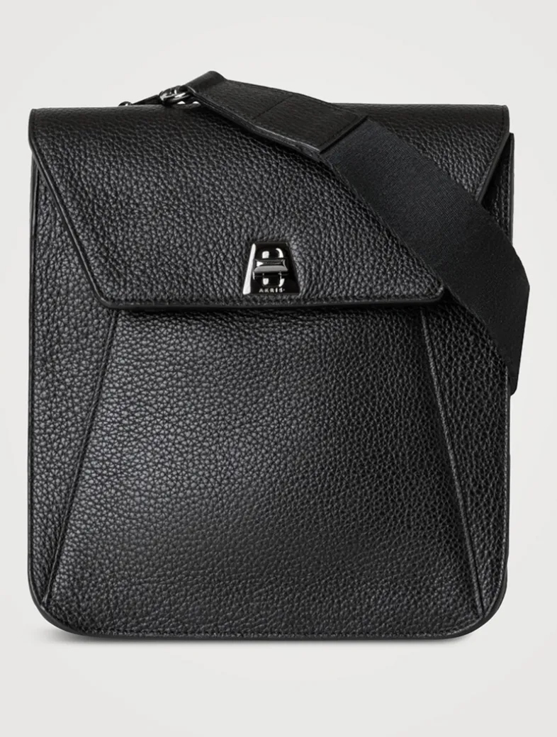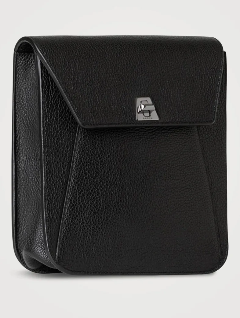 The Anouk Messenger is a practical crossbody bag with a slightly vertical rectangular design. The trapezoidal front flap with custom turn-lock connects it to the other Akris handbag families. It features a spacious main compartment with one clamp pocket and a front and back pocket on the outside. The adjustable strap is created from a wide webbing for stability and comfort while on the go.