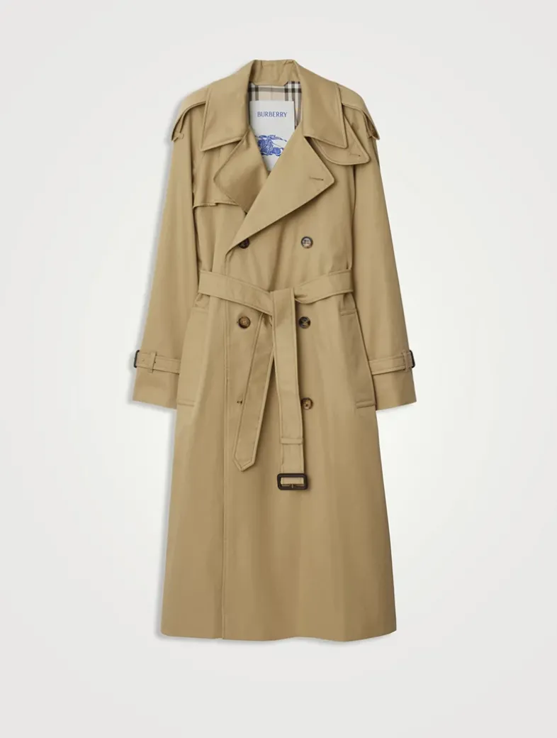 A trench coat made in England from shower-resistant cotton gabardine and lined in Burberry Check. The Castleford is tailored to a regular fit with raglan sleeves.