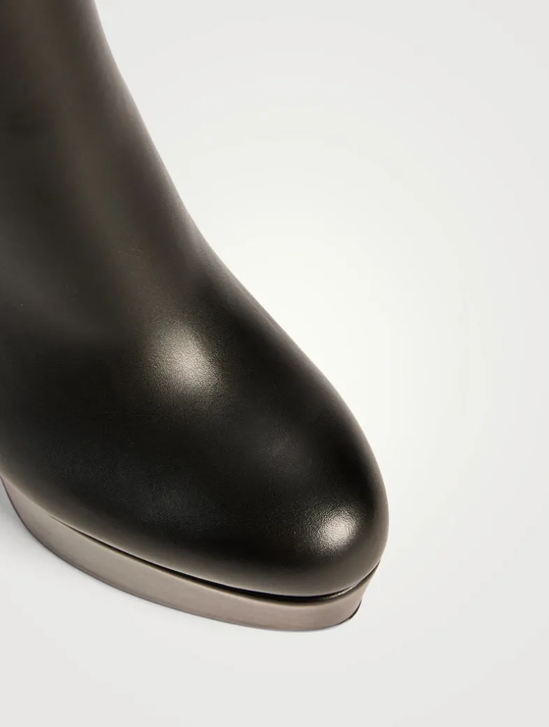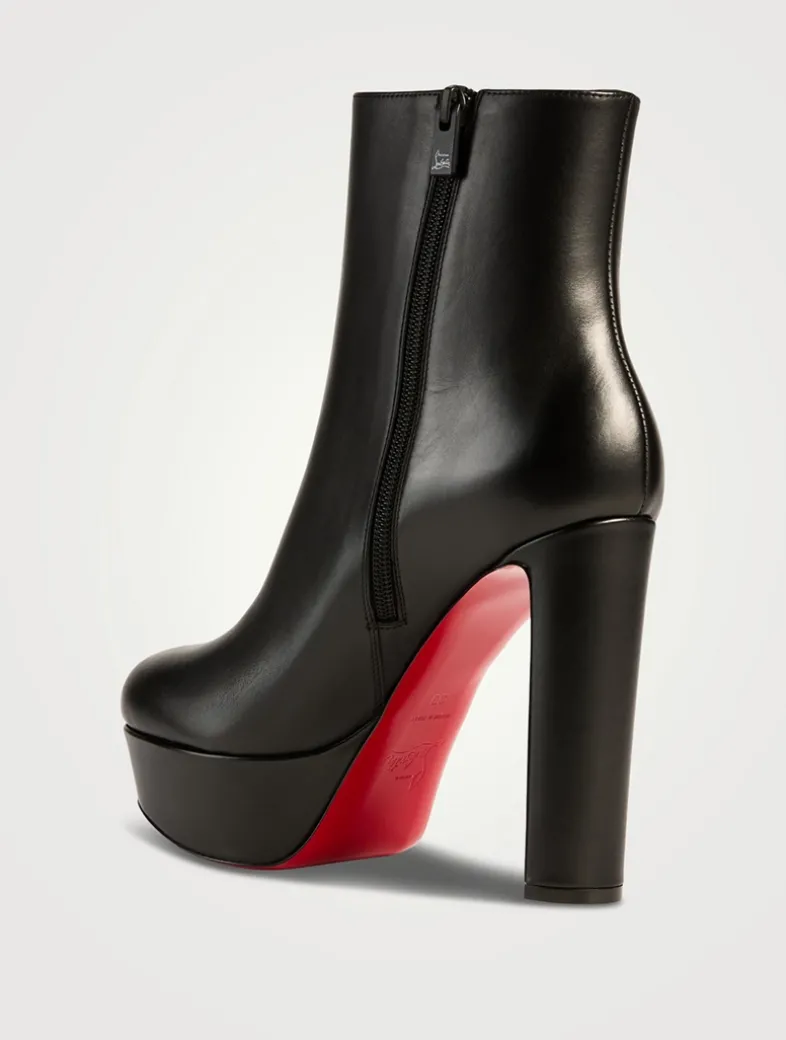 The Maison Christian Louboutin Loo ankle boot is elegantly crafted from leather, embodying understated sophistication. Sitting on a dramatic 130mm block heel and platform, it exudes an edgy confidence and style. Finished with the iconic Loubi red sole to add drama to every step, and featuring an almond toe, this modern boot will turn heads.