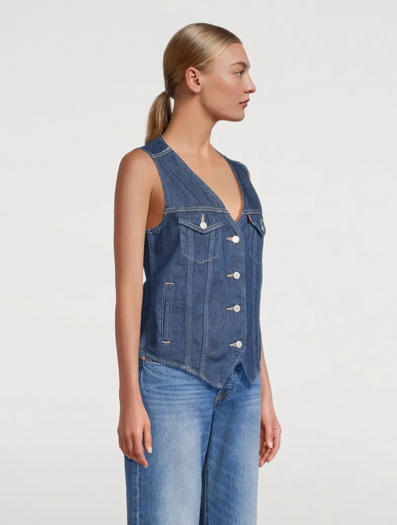 This sleeveless topper is cut to a relaxed fit detailed with instantly recognizable Levi’s® details, like metal branded buttons and stitch detailing. Made from non-stretch denim.