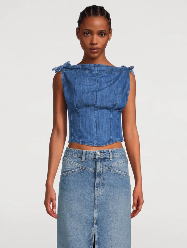 Crafted from cotton, this sleeveless top is enhanced with sculptural styling. It has a bateau neckline framed by knotted shoulder details and a nipped-in waist with seaming and a smocked back panel.