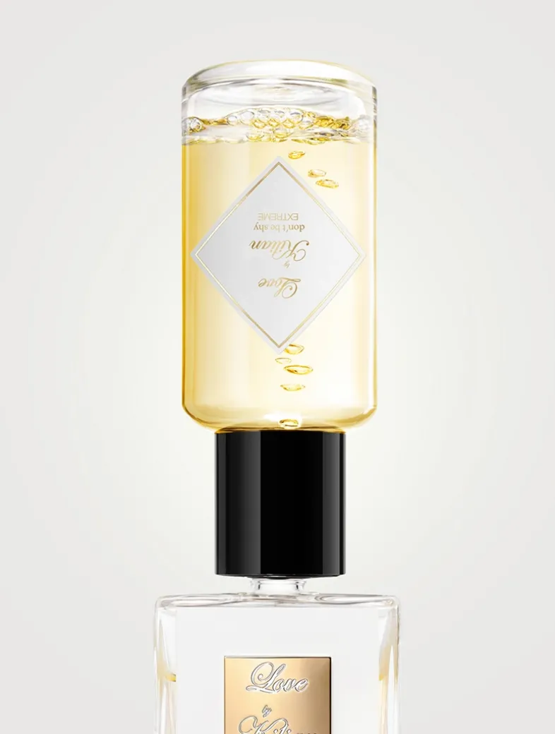 A gourmet pleasure reserved for adults, the iconic Love, don’t be shy is pushed to its EXTREME with an overdose of Bulgarian rose. From the Narcotics olfactory family, Love, don’t be shy – EXTREME is such an addictive pleasure that sensitive souls are asked to abstain. A variation that underlines the original version adding a sublime crystallized floral aspect. Orange blossom and an overdose of rose compose a luminous elixir that no gourmand can resist. Its rose petals are hand-picked at dawn to capture the fragrance in all its intensity – a handmade detail that reaches the subconscious mind. True luxury should last a lifetime, and as such, all by KILIAN Paris fragrance bottles are designed to be refilled. Start refilling your bottle by carefully removing the atomizer. Plug your refill bottle into your flacon and make sure to hold it vertically. The cutting-edge dispenser will stop transferring the perfume automatically once the container is full. This innovative new refill allows an easy spill-proof process to refill many times your 50ml fragrance bottle and your travel spray.