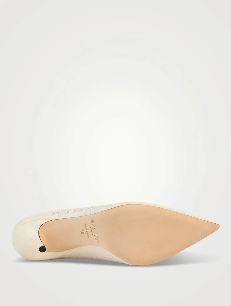 The iconic Jimmy Choo silhouette is updated with tonal Sangallo embroidery and dainty cut-outs. This pair, set on a slim 85mm heel, is designed with a dramatic pointed toe, and cut higher on the foot, allowing for more coverage.