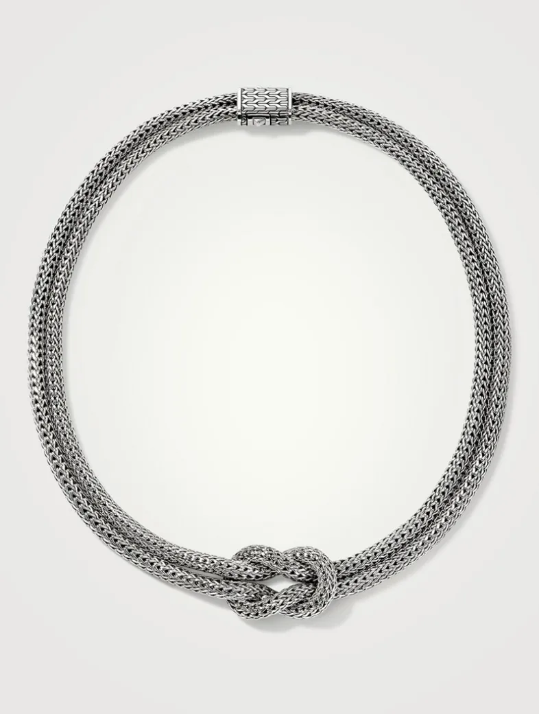 The Love Knot collection is an evolution of the brand’s heritage Icon Chain. Artisan handcrafted, this woven necklace is made from reclaimed sterling silver.