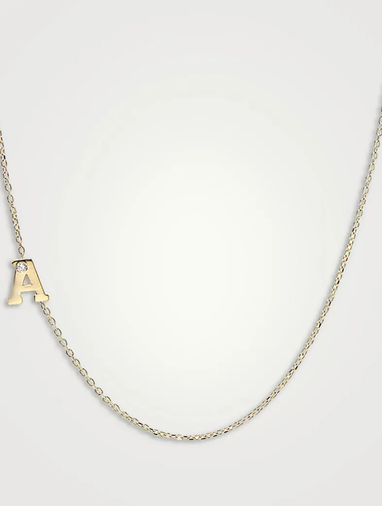 A single diamond is bezel set in a delicate gold letter pendant, complete with gold chain. This giftable necklace is crafted in 14k gold.