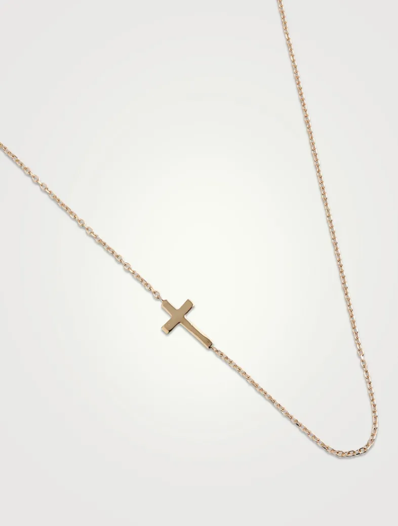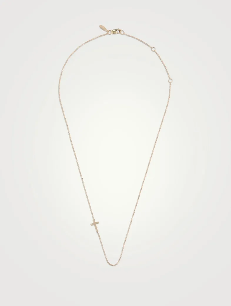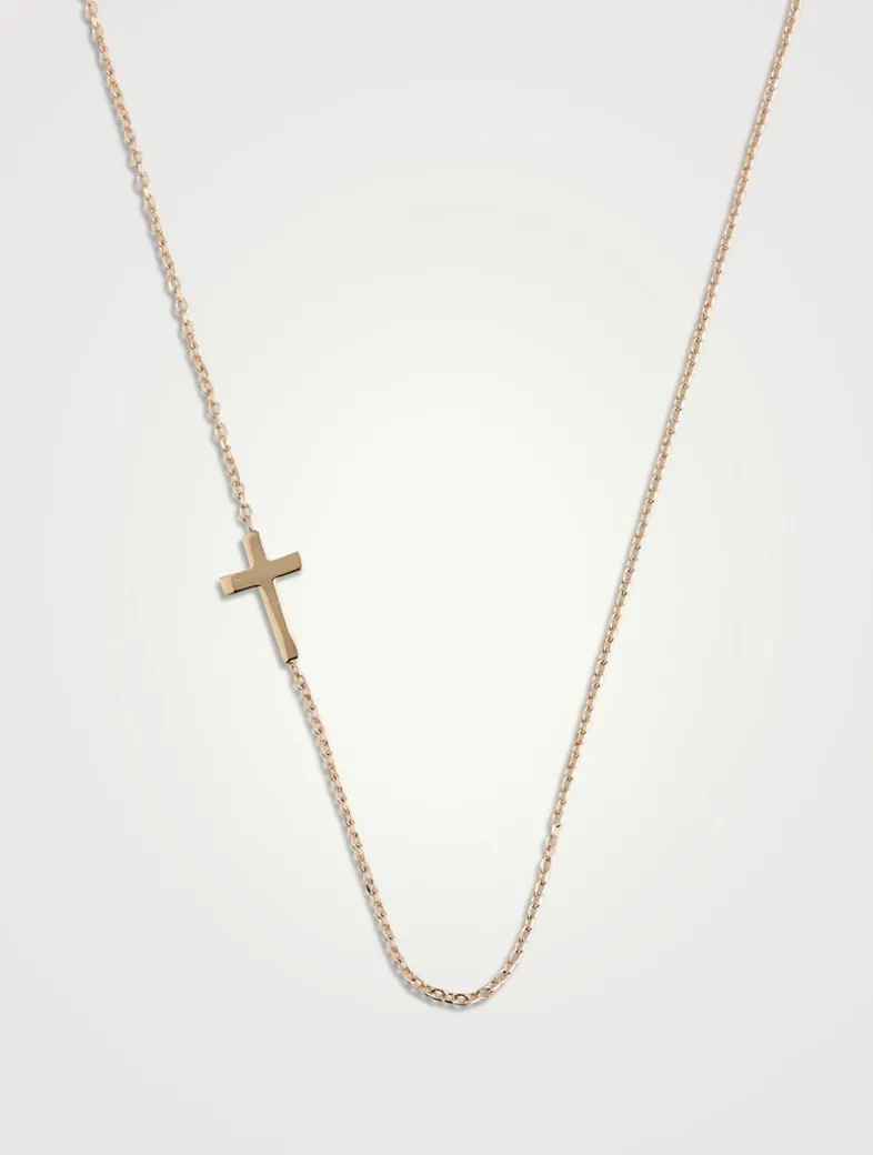 From the Love Letter Collection. Set asymmetrically on a classic chain, this necklace features a delicate cross detail.