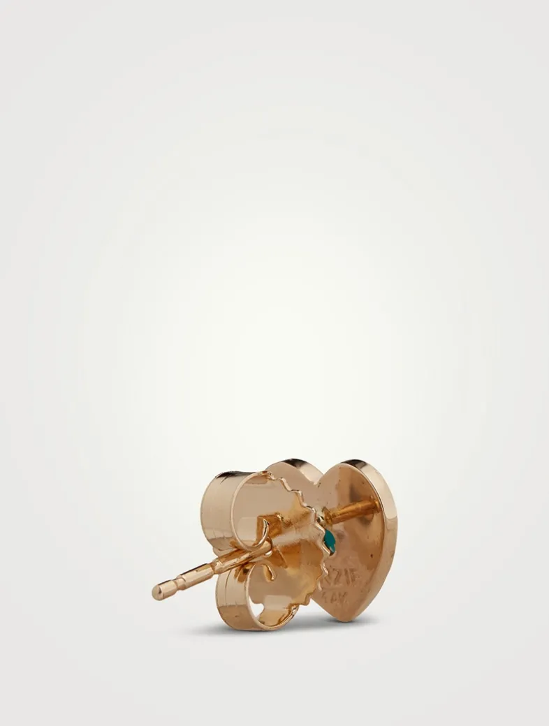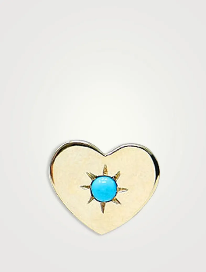 Mounted on a gold post, this single heart-shaped stud earring is adorned with a turquoise cabochon in a vintage star setting.