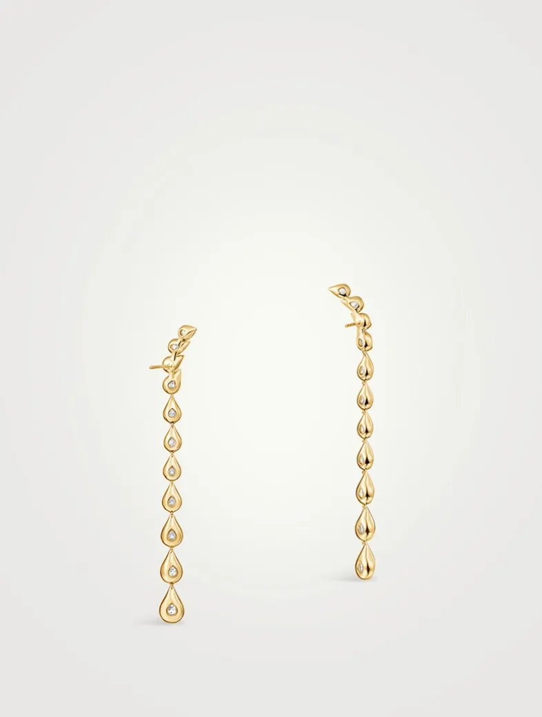 LU 18K Gold Droplet Stiletto Earrings With Diamonds
