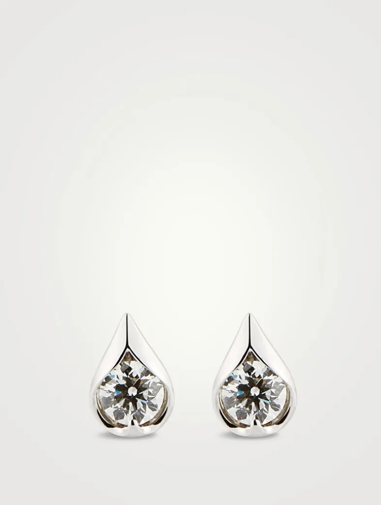 LU 18K White Gold Droplet Diamond Stud Earrings