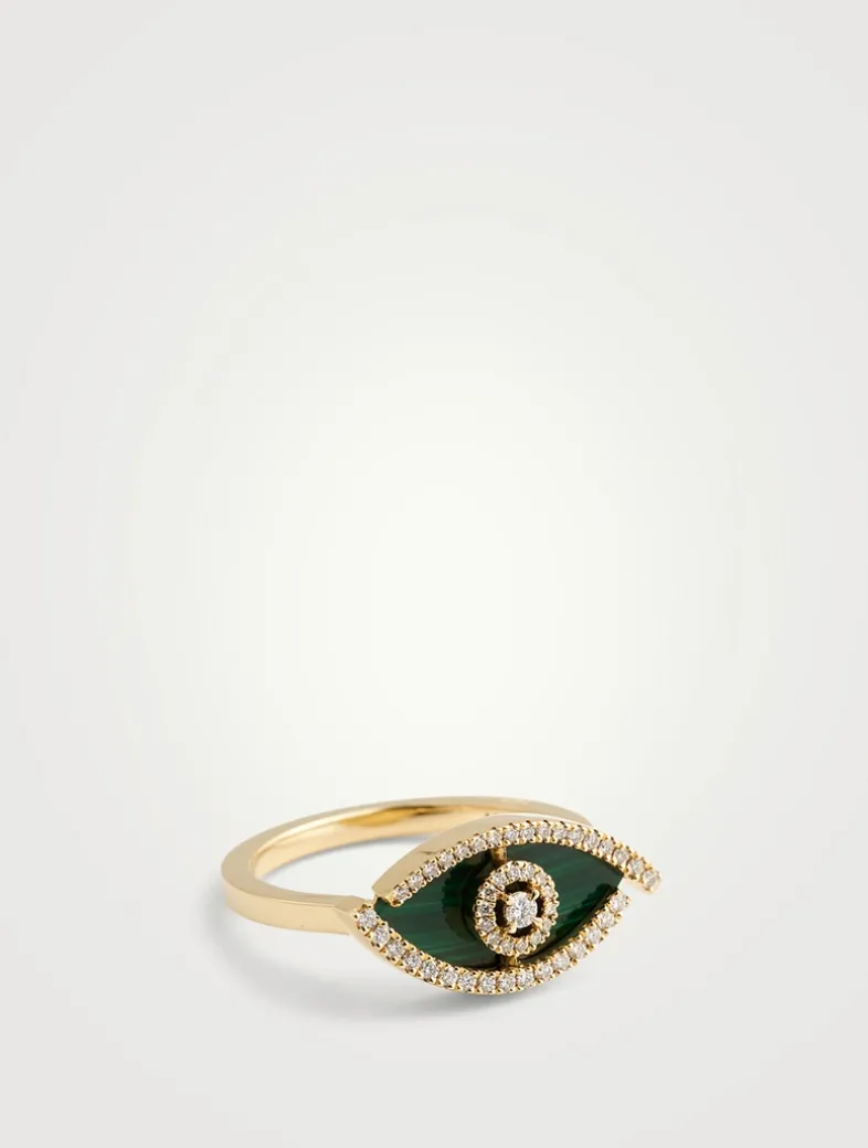 Lucky Eye Malachite 18K Gold Ring With Diamonds