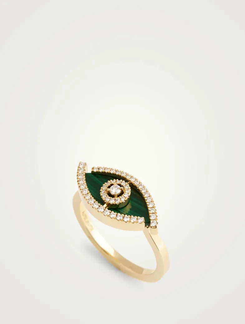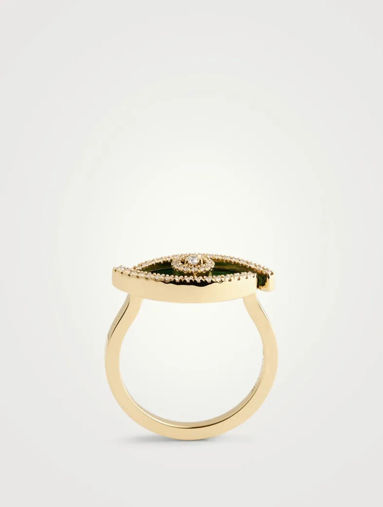 From the Lucky Eye collection, this luxurious gold ring is designed with deep green malachite and brilliant diamonds.