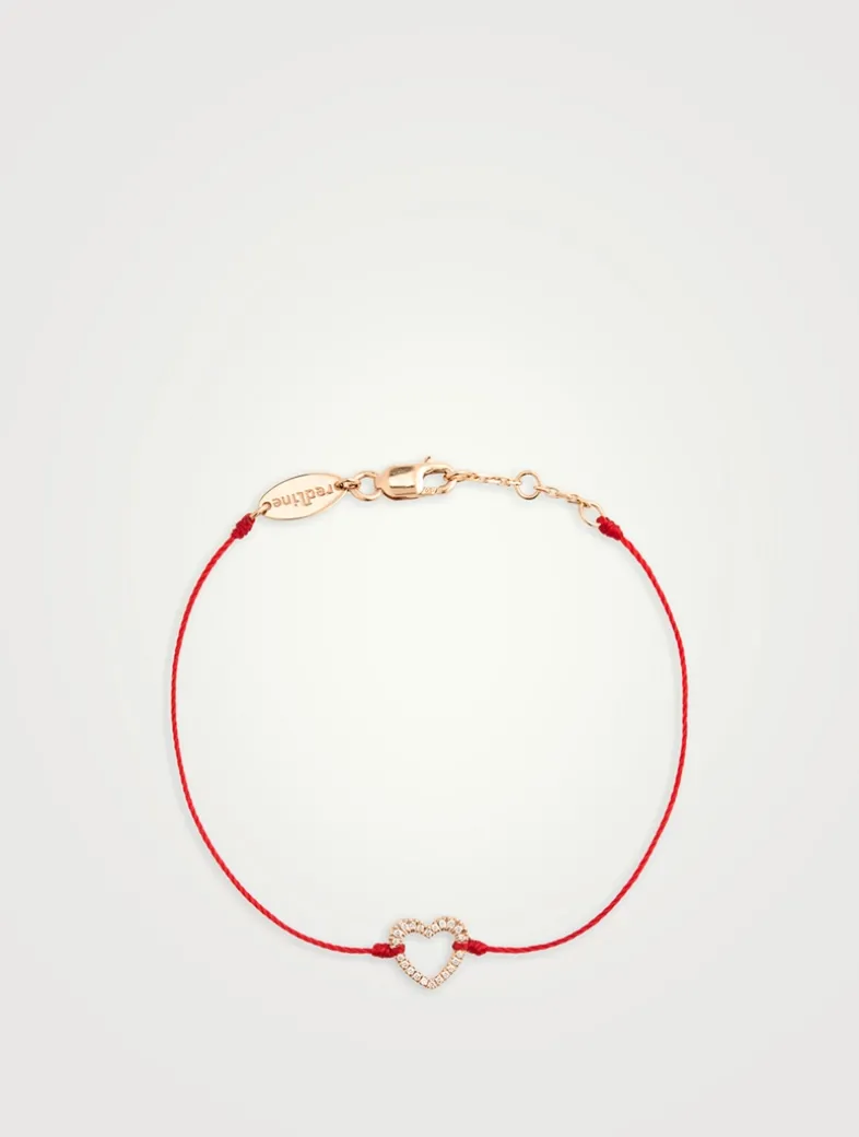 A dainty pavé diamond heart in 18k gold adds charm to this delicate RedLine string bracelet, easily adjustable with three linked rings and an 18k gold clasp.