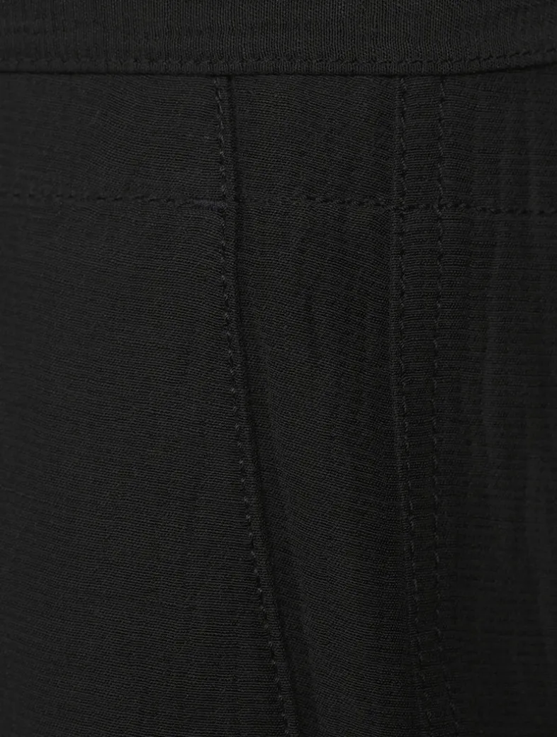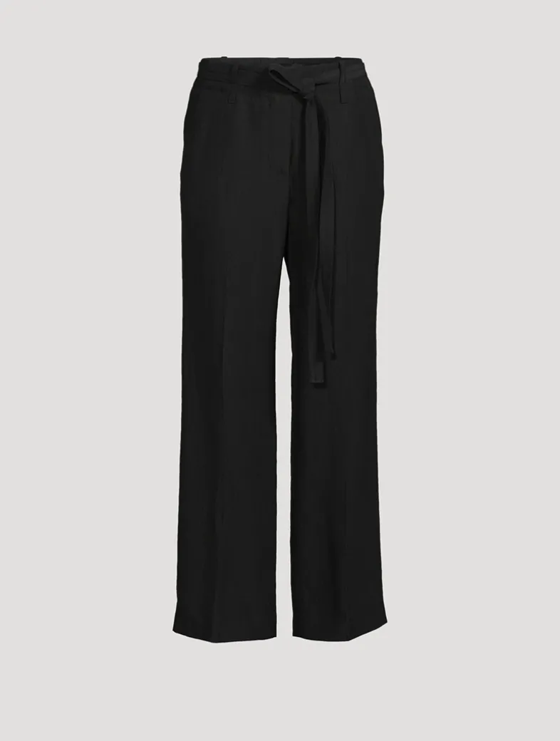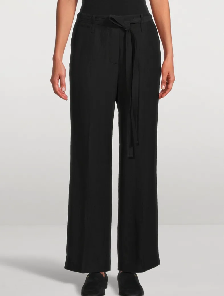 The Maggi pant is cut to a slouchy, straight-leg silhouette with a center-stitched self-tie belt, side slip pockets, and a concealed front closure.