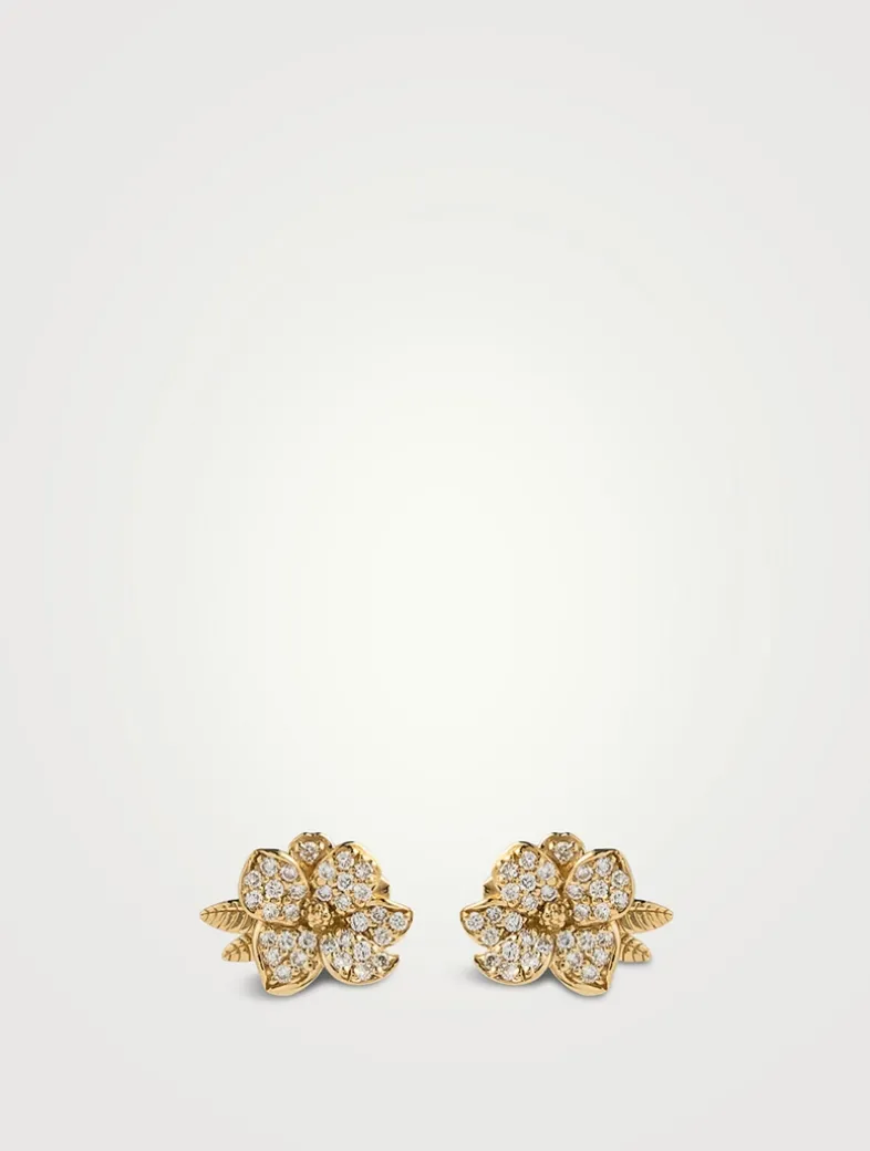 Magnolia 14K Gold Stud Earrings With Diamonds