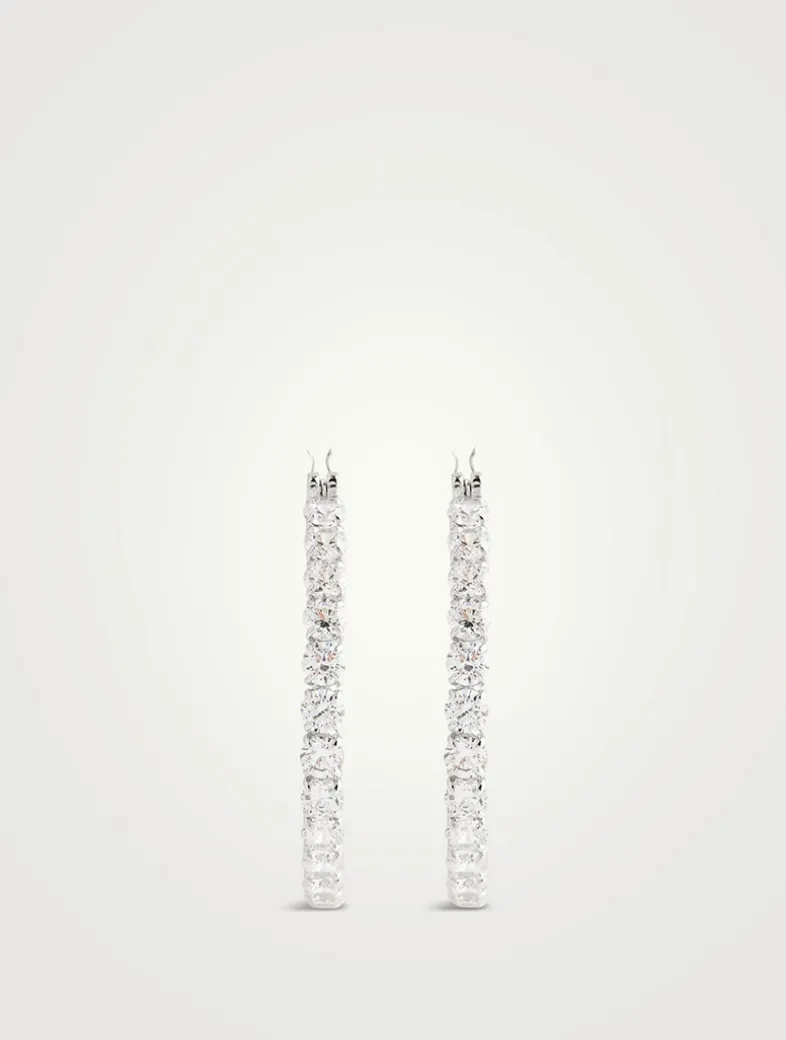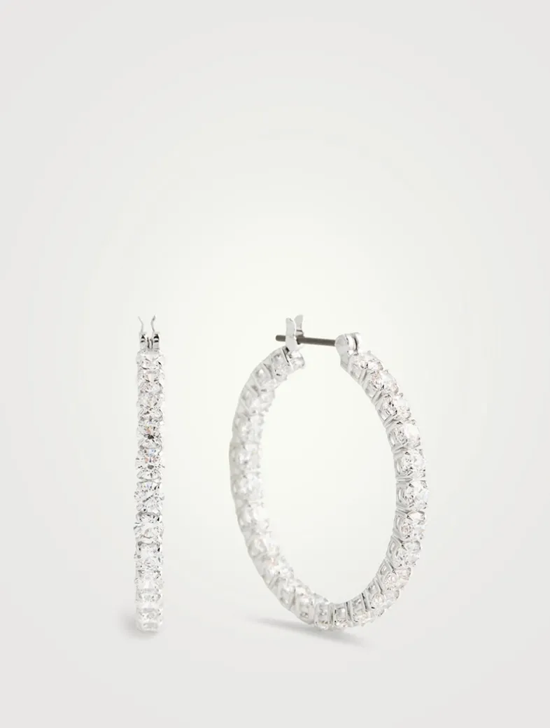 A radiant combination, these perfectly formed Matrix hoop earrings are defined by the timeless look of clear round stones and rhodium plated metal.