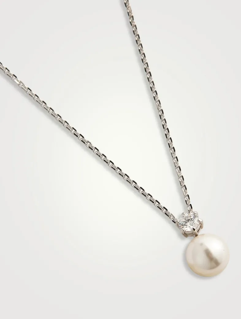 This delicate Matrix pendant celebrates simplicity with a single white Swarovski Crystal Pearl and a round-cut Swarovski Zirconia, elegantly suspended from a rhodium-plated chain.