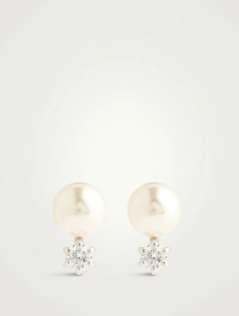 These rhodium-plated studs offer a modern twist on the classic pearl earring, featuring a white Swarovski Crystal Pearl and a round-cut Swarovski Zirconia in a refined, light-catching design.