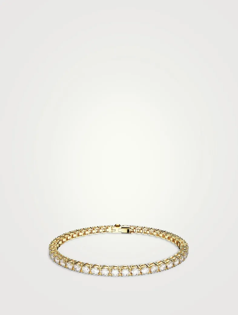 Petite round-cut stones define this bracelet from SWAROVSKI’s Matrix collection. Set in goldtone, this elegant statement has a hidden barrel clasp for a uniform look.