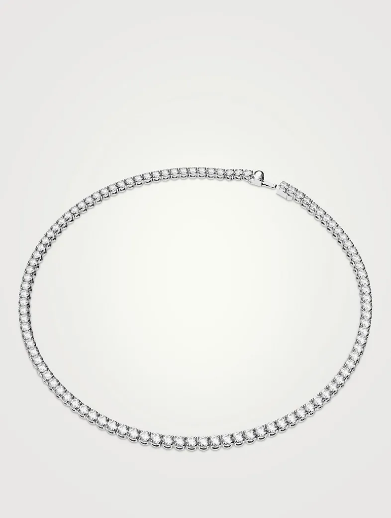 Stations of cubic zirconias stand out in this classic collar necklace. The minimal clasp allows for an unbroken halo of glimmer around your neck.