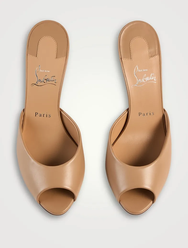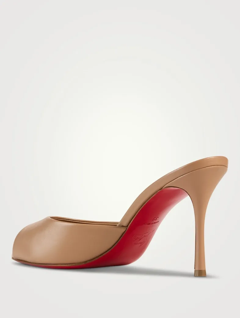 Inspired by Dolly Parton, the Me Dolly mule has been reworked with a new heel height. This stunning model has a wide, almond-shaped peep-toe construction, and Maison Christian Louboutin’s signature 85mm ‘fetish’ heel.