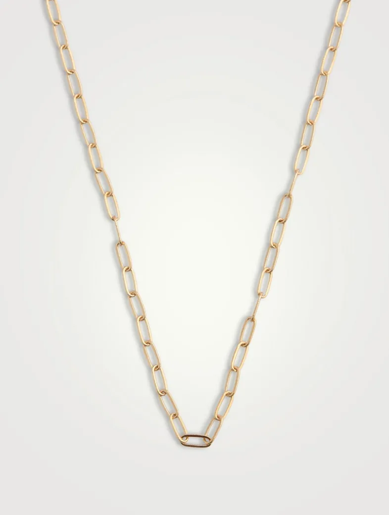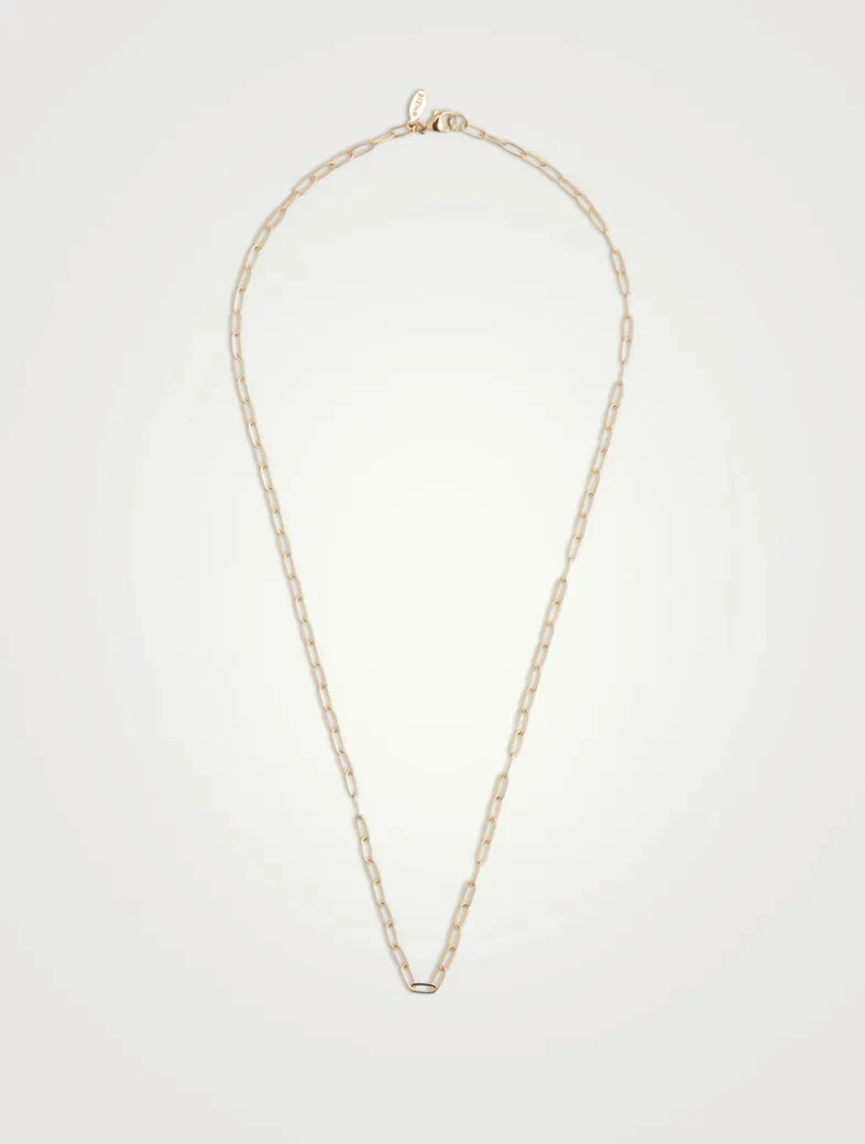 This gold paperclip chain fastens with a lobster clasp, and is finished with a gold Anzie tag.