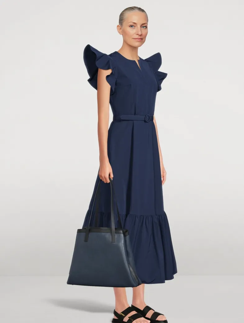 Crafted from grained leather, this shoulder bag offers three convertible looks. When opened, it is a rectangular shopper, with the corners folded inside and secured with the turn lock, with the corners folded on the outside and closed with the turn lock. The medium bag features one inside zip compartment, two organization pockets, and includes a removable leather zip pouch.