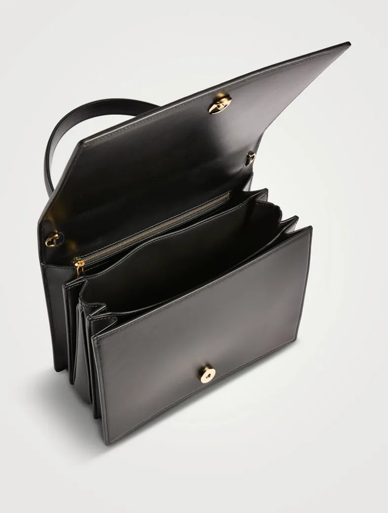 The Alice top handle bag is crafted from soft calf leather with antique metal hardware for a refined finish. Its structured flap closure, adorned with the signature trapezoid, secures with a discreet magnetic fastening. Designed for versatility, it features a long detachable and adjustable shoulder strap and a thoughtfully organized interior with three compartments and a zip pocket.