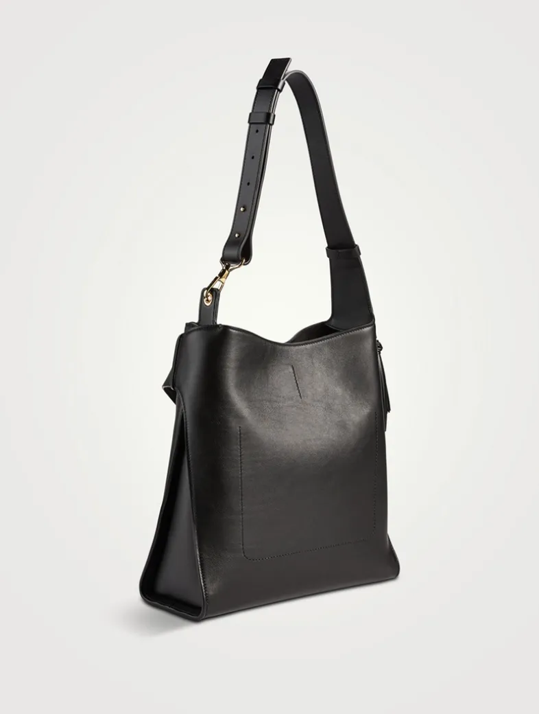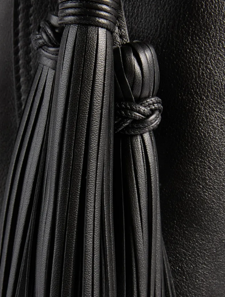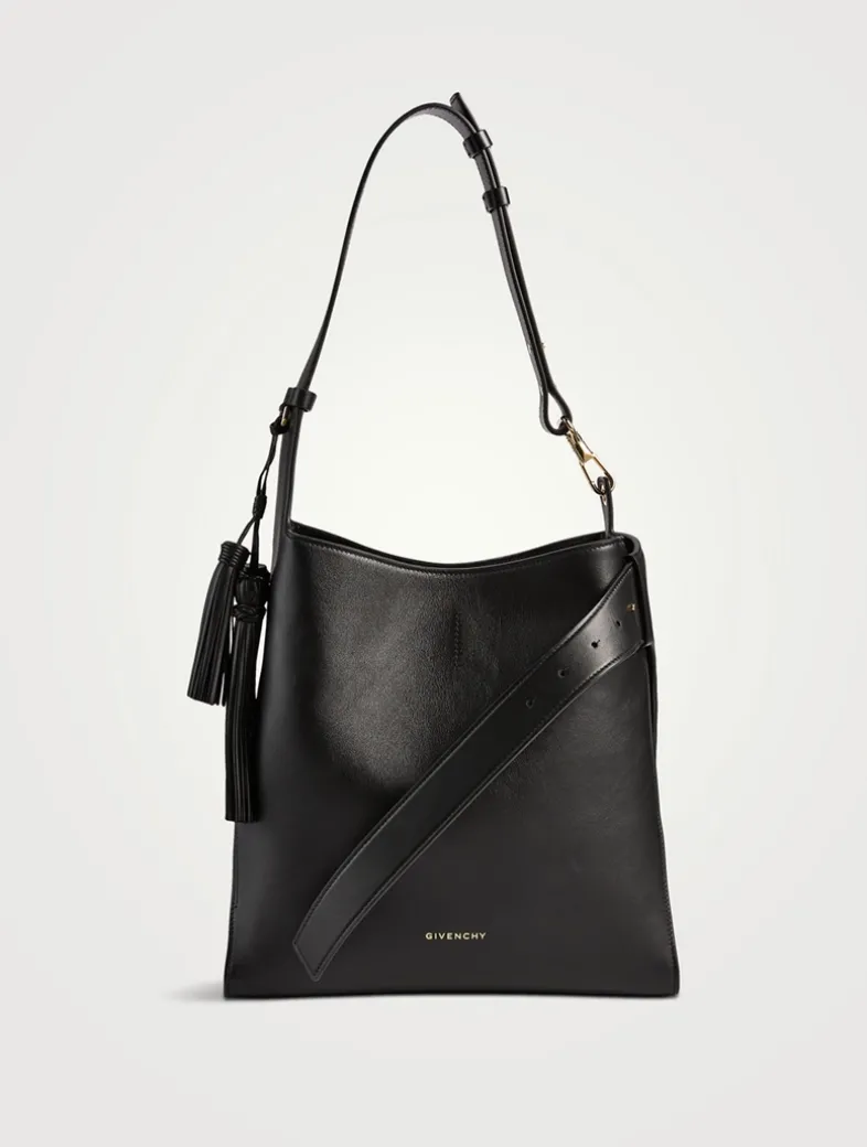Part of Givenchy’s Belted line, this buttery leather tote has an adjustable shoulder strap, a leather belt adorning the front, and a removable decorative tassel. It is lined with suede and designed with one main compartment and one flat pocket inside.